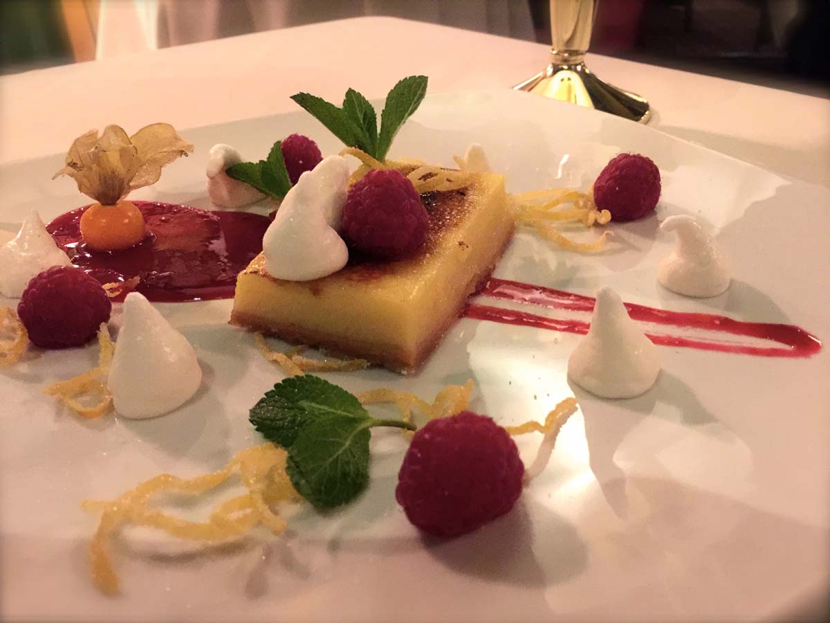 Given myself and my dining partner both have our eyes on a red meat main course, we opt for a red wine to accompany dinner. Coming recommended, we sample the Cotes du Rhone from the Delas Freres estate. It’s a light, elegant wine full of flavour that’s going to match my choice of lamb and my dining partner’s choice of beef.